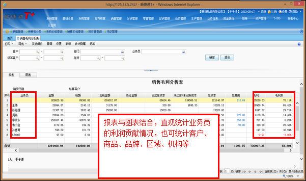 真实业务场景再现——销售人员开会的时候会问内勤人员:利润越来越薄,商品种类越来越多,哪些商品好卖?哪些客户、业务员、部门贡献大? 这时候内勤人员无法及时、准确、全面的拿出数据分析,该怎么办? T+ 又说了:还是看我的! T+提供销售排行,随时掌握商品排行、业务员排行、客户排行等,销售排行早知道;同时提供多维度的销售毛利分析,分析客户、业务员、商品、区域等的销售毛利共享,做到收入贡献心中清。 | | | | |  |