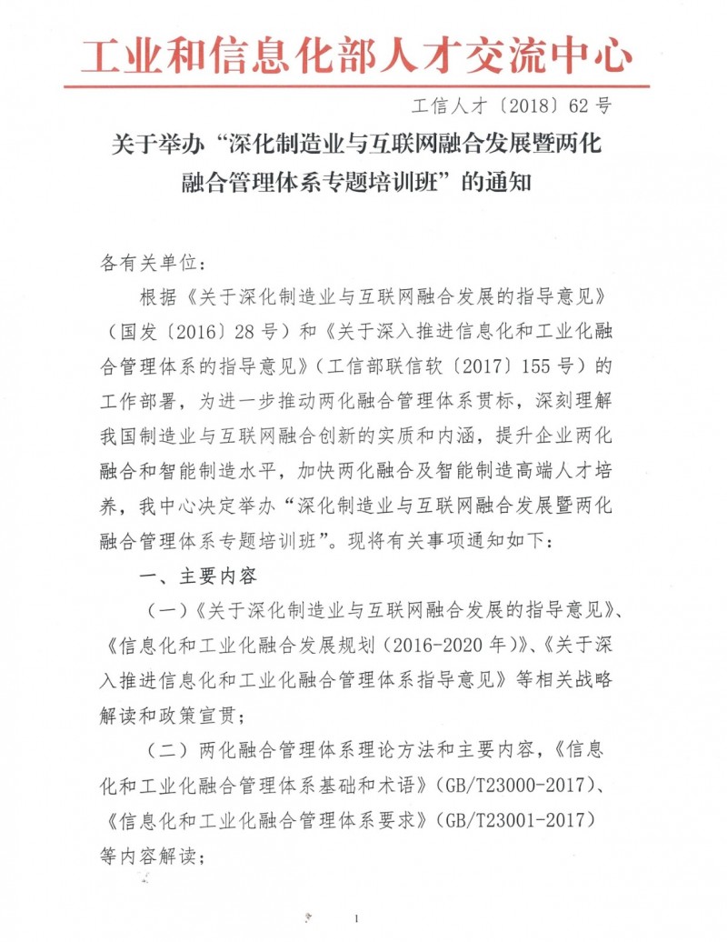 “深化制造业与互联网融合发展暨两化融合管理体系”文件